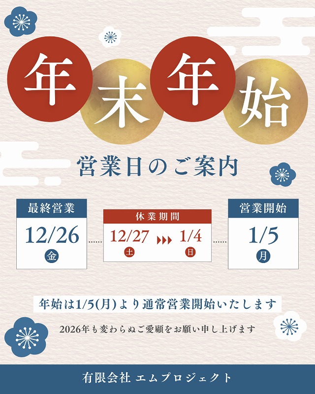 【2025-2026年年末年始休業のお知らせ】